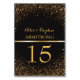 Cartes de numéro de table en or et noir tendance mais classique pour votre mariage en or sophistiqué. Arrière - plan noir mat au charbon de bois avec parties scintillant en faux or sur les bords supérieur et inférieur. Un séparateur d'apparence en métal doré est centré entre les noms de mariée et de mariée personnalisés en écriture élégante, avec un nouveau nom de famille en couleur or et un numéro de table en or gras. Identique de l'autre côté. Il s'inscrit dans la même veine que les mariages du Great Gatsby, décorés sur le thème de l'Art déco. Ajoutez chaque numéro de table séparément à votre panier Zazzle en utilisant le modèle.