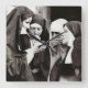 An old black and white photograph of a group of nuns lighting a cigaret. The contrast of the nuns smoking gives the photograph character and attitude that suits a trendy home.