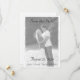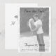 Design front features the photo you supply displayed in black and white against a white background. The semi-transparent effect helps to create the appearance of fine elegance. Heading, date, names and city are all displayed in an elegant black Nuptial font. Photo is bordered with a flourish.