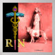 Elegant Registered Nurse R N symbol with digital elaboration of pink vintage photography of a Red Cross Nurse with dog. Artistic.classy gold caduceus with entwined golden serpents,blue wings and 3D gem stones.Caduceus is symbol of ancient Greek astrology,medicine and healing ,sceptre of Hermes messenger of Gods and,divinity of zodiacal sign Gemini. Cool jewel design,modelling and rendering by Bulgan Lumini (c).Visit our web-site at:www.webalice.