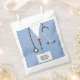 Creative medical-themed nurse party favour bags featuring blue hospital scrubs. Edit text to personalize.