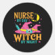 Nurse by Day, Witch by Night Cat Halloween Classic Classic Round Sticker