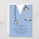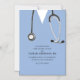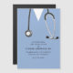 Creative nurse graduation announcement for nursing school or medical school grad featuring blue scrubs.