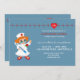 A lighthearted invitation for a nursing school graduate's party. The solid blue background features a cute, little nurse holding a thermometer. A heart beat line crosses the top with a red heart that reads "RN".