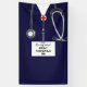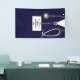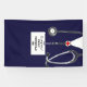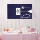 Creative nursing school graduation party congratulations banner featuring navy blue hospital scrubs and stethoscope. To personalize edit text to add name of your favourite nurse grad.