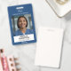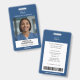 This nurse hospital photo id badge in ocean blue features a logo and provides clear staff identification for medical and healthcare settings. the vertical, professional design ensures easy verification and supports secure workplace operations.