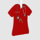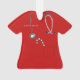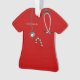 Creative nurse Christmas holiday gift ornament featuring red hospital scrubs, a stethoscope and a candy cane in the pocket. To personalize edit text to add name.