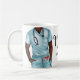 This fabulous coffee mug features an African American male nurse in blue scrubs with text image "Nurse Life" and personalized with your name and initials. Makes a great gift.