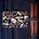 Nurse Love Print Luggage Tag with Nurse Hat, Heart Stethoscope, Bandage and Medication on a Black Background.