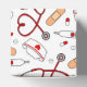 Nurse Love Print Party Favour Box with Nurse Hat, Heart Stethoscope, Bandage and Medication on a White Background.