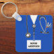Creative nurse keepsake keychain featuring blue hospital scrubs and funny Swiss Army knife in the pocket. Edit text to add name.