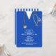Modern nursing school graduation party invitation or nurse grad announcement design featuring creative blue hospital scrubs.