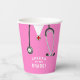 Creative nursing school graduation party cups for nurse grad featuring pink scrubs and congrats. Edit text to customize.