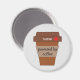 This magnet displays a brown coffee cup with the text "nurse - powered by coffee." There is a red cross next to "nurse."