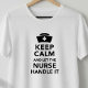 Give the nurse in your life a confidence boost with this classic Keep Calm quote white shirt! Featuring a nurse's cap icon, this mug reads: "Keep Calm and Let the Nurse Handle It." It's a humorous and practical gift for a Registered Nurse (RN), LPN, student, or any hospital staff member who saves the day. Perfect for Nurse Appreciation Week, a graduation, or as a fun coworker gift for the break room!