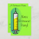 Nurse Retirement Party Invitations Giant Syringe design. Fully customizable on front and page. Big yellow syringe on lime green background. Perfect for any retiring nurse.