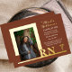 Classy and elegant one photo gold text "RN" caduceus registered nurse graduation announcement design with real foil details by Holiday Hearts Designs (rights reserved). Placeholder template photo courtesy Unsplash.