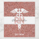 Decorate your wine bottles with these Nurse RN Graduation Pink Rose Gold Glitter Name Wine Labels. This modern design has rose gold faux glitter background and a white medical caduceus symbol on the centre. The text is "RN" in matching dusty rose modern retro line lettering. Personalized with nurse graduate's name in hand lettered script over the registered nurse abbreviation. Graduation "established" year is across the lower labels. CLICK PERSONALIZE TEMPLATE OPTION AND FOLLOW THE PROMPTS