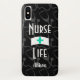 Cute design case for nurses with stethoscope silhouette patterned on background and customizable colour. White nurse's cap with turquoise medical cross centred on case and "Nurse Life" in white typography.
