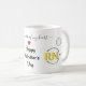 Nurse stethoscope Valentines day grey and yellow RN Coffee Mug. A personalized mug with the phrase "To the nurse of my heart", and "Happy Valentine's Day" with a red heart and an ultimate grey stethoscope with the abbreviation RN in illuminating yellow on each side.