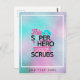 Add a name or other text to personalize this fun modern gift for nurses which reads 'this superhero wears scrubs'. Pink and blue typography.