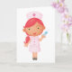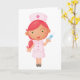 This design is a nurse with a needle. The nurse has a happy expression as she holds a large needle. This nurse with a needle design looks great on this Greeting Cards