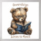 Cute teddy bear wearing glasses and reading a book. Great for encouraging your child to read. Square nursery decor 12" x 12". Use the "Personalize this template Details" link to change the name. Text in brown. AI assisted graphic purchased with commercial use. Artwork: MokoDE
