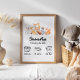 Cute boho nursery decor poster with birth stats and a watercolor woodland animals. Unique gift idea for newborn.
