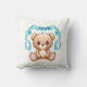 Create a nice pillow for your nursery decor. Baby pillow features a cute and adorable teddy bear with blue ribbon. The back of the pillow features cute blue polka dots. Customize the pillow with your baby's name. Include this great addition to your nursery.