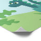 Cute dinosaur in eggshel, it's a baby boy dino, prehistoric landscape nursery poster. Blue and green dinosaur smiling poster for boys.
