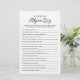 Purchase this game and enjoy high quality Nursery Rhyme Quiz card for your event! Gender neutral Black and White design.