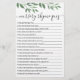 Purchase this game and enjoy high quality Nursery Rhyme Quiz card for your event! Gender neutral Greenery design.