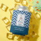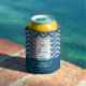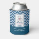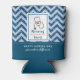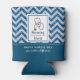 A can cooler with a blue chevron faux glitter pattern. Not actual glitter, just an image. Layered over top is a rectangle shaped frame and inside is the saying: Nursing is a work of heart, with a little red heart and a grey stethoscope. text along the bottom border also says Happy Nurses Day, you make a difference.