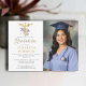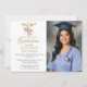 A delicate watercolor botanical arrangement of purple roses and greenery with soft gold sprinkles (this is a digital effect, not real gold foil), as well as a gold caduceus are the elegant decorations for this simple, classy, modern nursing school graduation invitation with photo, that you can fully personalize and modify with the name of the school, the degree etc. The large template area allows for plenty of space to include the graduation ceremony location and a celebration afterwards, or customize it simply with the graduation party details.