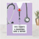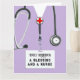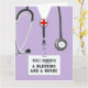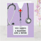 Personalized nurse graduation card design featuring lavender hospital scrubs for nursing school grad. Edit text to add name.
