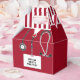 Creative nursing school graduation party favours featuring red hospital scrubs. Edit text to personalize for nurse grad celebration.