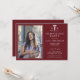 Modern elegant dark red burgundy and white nursing school graduation party invitation card template with your custom photo and text.