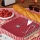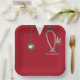 Creative nurse graduation party plates featuring red nursing scrubs, stethoscope and funny Swiss Army knife art. To personalize edit text to add nurse grad's name.