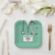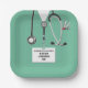 Creative nursing school graduation party plates for nurse practitioner, registered nurse or physician assistant. To personalize edit text to add name.