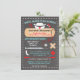Super cute "She'll make it all better" Nursing School Graduation Party Prescription with nurse's hat, hypodermic needle, pills, stethoscope on a chalkboard background. Hand drawn illustration by McBooboo's