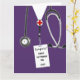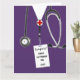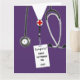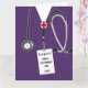 Personalized nursing school graduation card template featuring purple hospital scrubs. To customize edit text to add name of your favourite nurse.