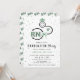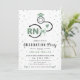 Nursing shool class of 2026 stethoscope sage green RN graduation Invitation. This feminime girlyRegistered Nurse graduation invitation features a black stethoscope with a graduation cap, a heart, a coquette bow, confetti and the initials RN in green. The back includes a pattern of the 'RN" initials.