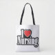 Totally thrilled with this bag. The material is thick and durable (this is my third purchase of this tote bag). The printing turned out amazing. The bright red was just as bright as it is on the computer. So impressed with this bag.