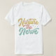 This t-shirt design features the empowering message "Nurture the Nerve" in a vibrant multicolor scheme. The specific colours and style will vary, but it could be: