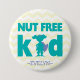 Girls Yellow and Teal Nut free kid with girl super hero figure on button. Peanut and/or tree nut food allergy alert button. Customize with name or other text. Attach to medical bags to note 'epinephrine inside'. Pin to child's clothing, coat or backpack to alert others of food allergy. Designs by Designs by Lil Allergy Advocates www.lilallergyadvocates.com