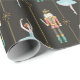 The Nutcracker Christmas wrapping paper features a nutcracker toy pattern with a classic black background, gold Stars and gold Stripes for a classic elegant look.