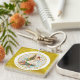 This double-sided, round keychain features a beautiful watercolor-style illustration of a ballerina, like the Sugar Plum Fairy, dancing gracefully by a Christmas tree laden with gifts. The vibrant design is encircled by a stylish gold foil effect border.