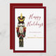 Send festive greetings in timeless style with this Holiday Christmas Card featuring a hand painted watercolor nutcracker framed by a classic red and black border on a crisp white background. The elegant design includes customizable script text that reads Happy Holidays, along with editable text that says From our family to yours and additional space below for your family or business name. Perfect for sending to loved ones, clients, employees, or holiday guests, this card beautifully blends traditional Christmas charm with refined sophistication. Ideal for families, small businesses, and event hosts looking to create a polished, coordinated holiday presentation. Part of the Holiday Nutcracker Collection, this Christmas card pairs seamlessly with matching return address labels, gift tags, stickers, menus, napkins, and invitations for a cohesive and elegant holiday stationery suite.