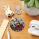 This colourful button keychain, zip pull, features a traditional Nutcracker Guard, with a golden crown, standing on guard outside a castle. This would make a lovely stocking filler, or Christmas gift.