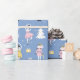 This nutcracker Christmas wrapping paper features a cute, whimsical pattern of nutcrackers and dancing ballerinas over a blue background. Personalize it by adding your child's name in a stylish script font. The perfect personalized giftwrap for the holidays!